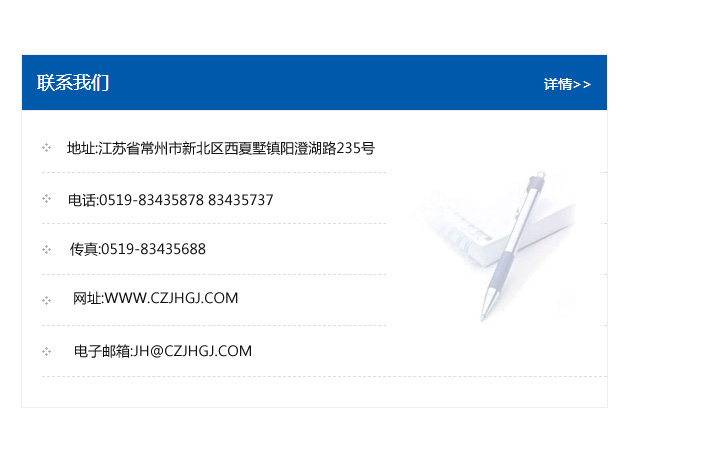 傳真:0519-83435688    郵編:213135    網址:WWW.czjhgj_com.hnwjyl.com    電子郵箱:JH@czjhgj_com.hnwjyl.com